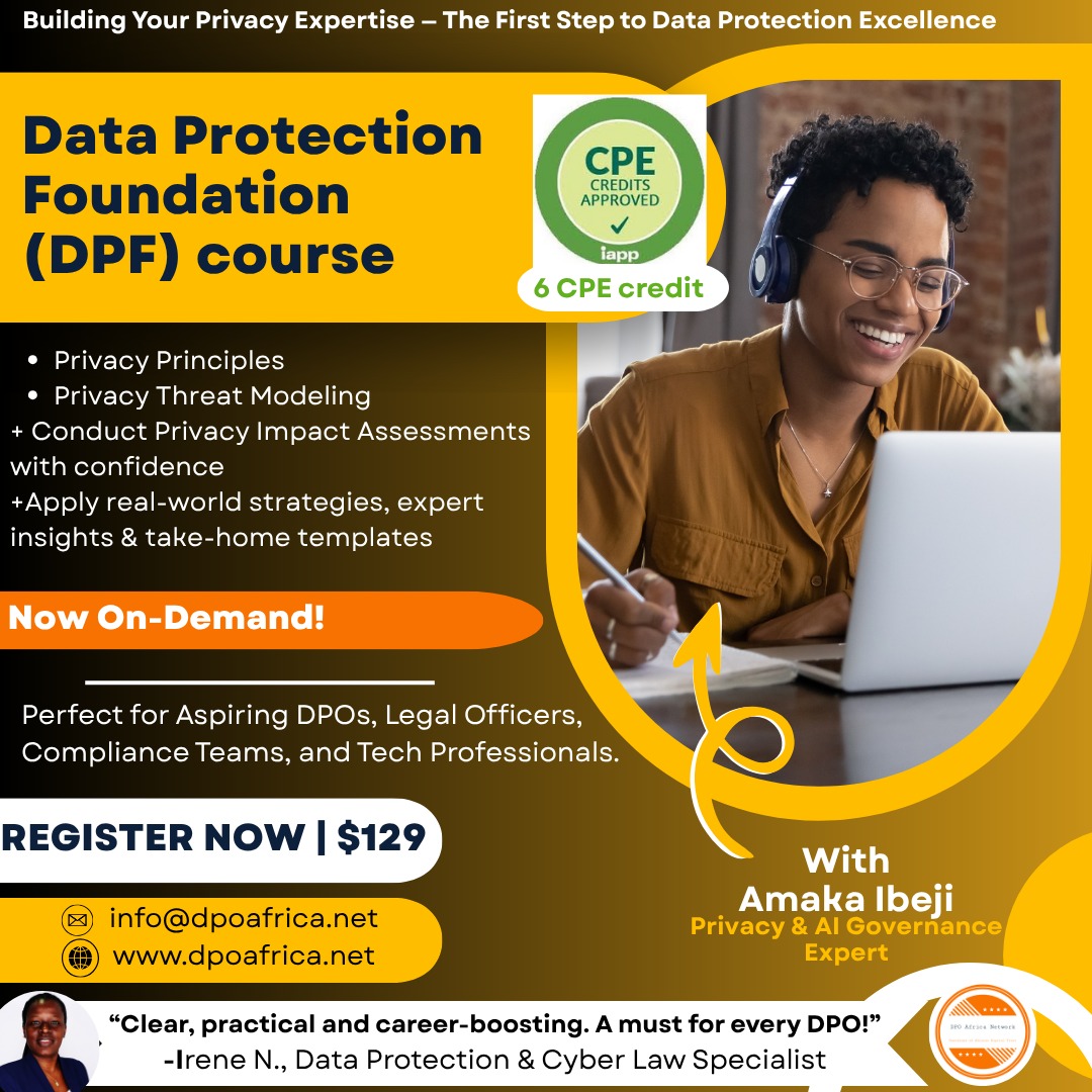The Data Protection Foundation (DPF) Course by DPO Africa Network is your fast track to mastering the core principles and practical skills needed to launch or elevate your privacy career. Whether you're a budding Data Protection Officer (DPO), legal advisor, tech lead, or compliance professional, this course is tailored to help you understand, apply, and lead with confidence in Africaβs evolving data privacy landscape.